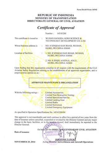 我們擁有CAAC、FAA、EASA以及多國和地區的維修資格證書